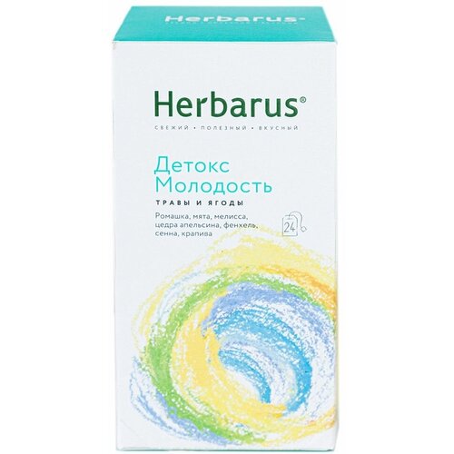 Напиток травяной Herbarus Детокс Молодость травы и ягоды в пакетиках, 24х1,6 г