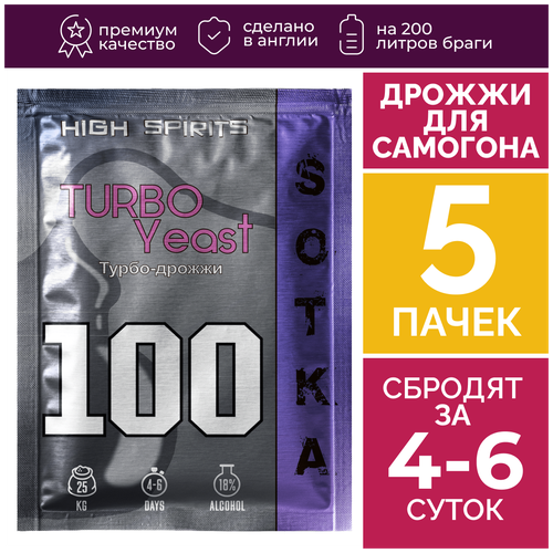 Дрожжи спиртовые турбо High Spirits сотка 100L ( на 100 литров) , 5 шт.