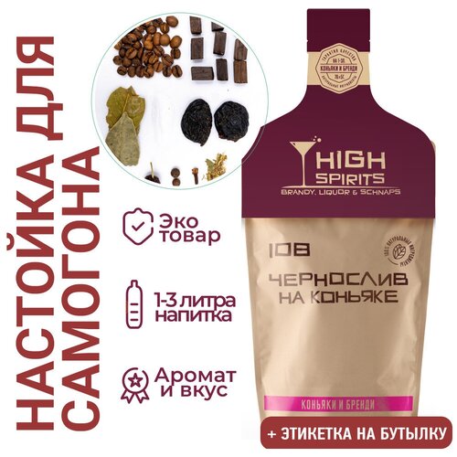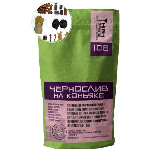 Настойка для самогона и водки "Чернослив на Коньяке", 89 г / Набор трав и специй "High Spirits" / Настойка с черносливом, изюмом и кедровым орехом