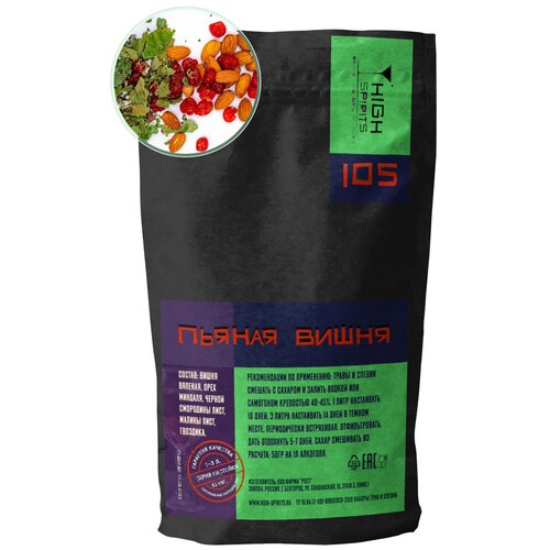 Настойка для самогона и водки "Пьяная вишня", 52 г. / Набор трав и специй для самогона "High Spirits" / Набор для настаивания / Настойка вишневая