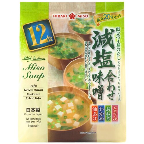 Мисо-суп ассорти с пониженным содержанием соли 12 порций Hikari Miso, 198,6 г, Япония