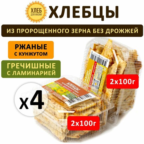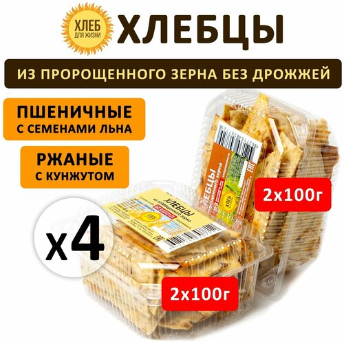 Хлебцы 2 вида: пшеничные и ржаные 400гр (4шт*100гр) цельнозерновые, из пророщенного зерна