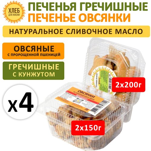 Печенье Овсянки и Гречишные 600гр (4шт*150гр) цельнозерновые из пророщенного зерна