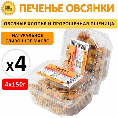 Печенье Овсянки 600гр (4шт*150гр) цельнозерновые из пророщенной пшеницы с овсяными хлопьями