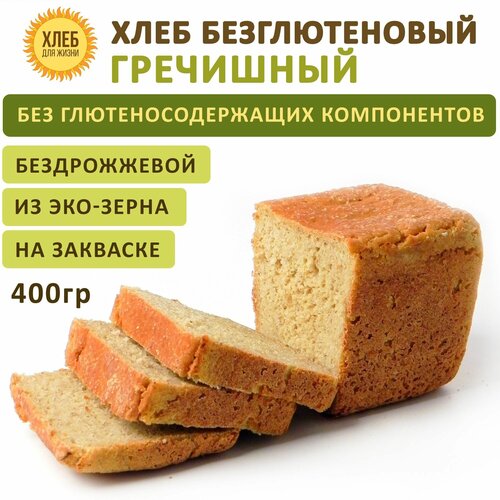 (1х400г) Хлеб Гречишный безглютеновый, цельнозерновой, бездрожжевой на закваске — Хлеб для Жизни