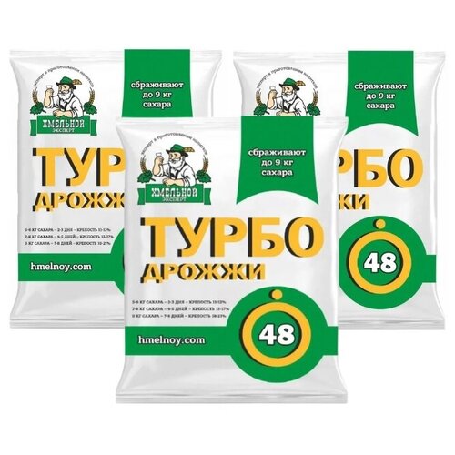 Турбо дрожжи 48 Хмельной эксперт/ Дрожжи спиртовые 3*130 гр /для самогона