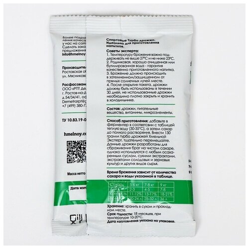 Турбо дрожжи 48 Хмельной эксперт,/Дрожжи спиртовые, 2 штуки 130 гр (спиртовые для самогона)