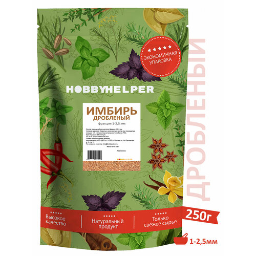 Имбирь HOBBYHELPER дробленый, фракция 1-2,5 мм (250г)