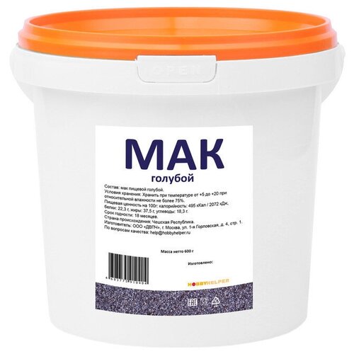 Мак пищевой кондитерский HOBBYHELPER в ведре 600г для выпечки