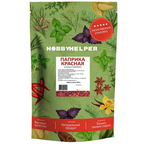 Паприка красная хлопья (3х3мм) HOBBYHELPER дой пак 250г