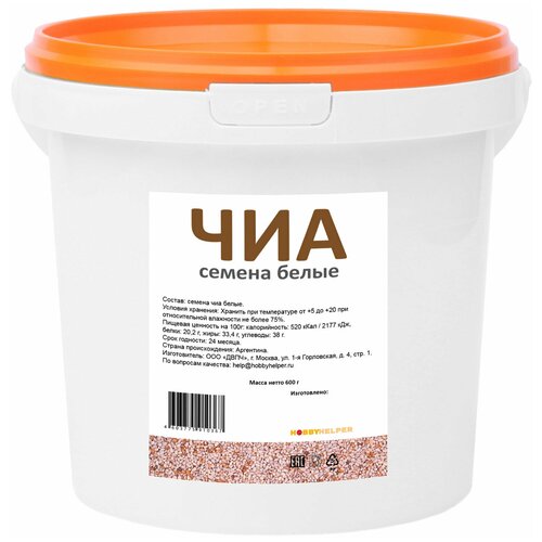 Семена чиа белые в ведре 600г HOBBYHELPER