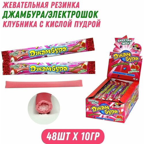 Жвачка джамбура/электрошок клубника с пудрой, 48 шт по 10 гр / Холодок