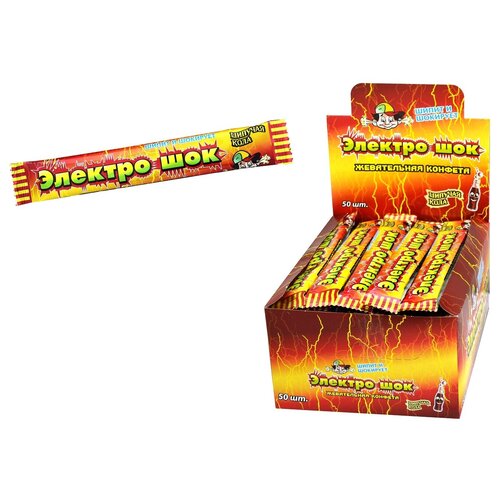 Жевательная конфета "Электрошок" с кислой начинкой с ароматом колы, упаковка 50 шт. по 20г.