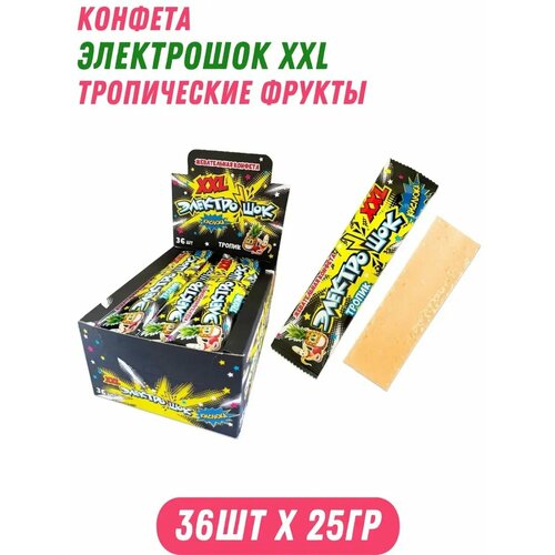 Жевательная конфета электрошок XXL со вкусом тропических фруктов, 36 штук по 25 грамм