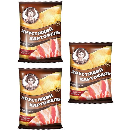 «Хрустящий картофель», чипсы со вкусом бекона, произведены из свежего картофеля, 3 пачки по 70 г