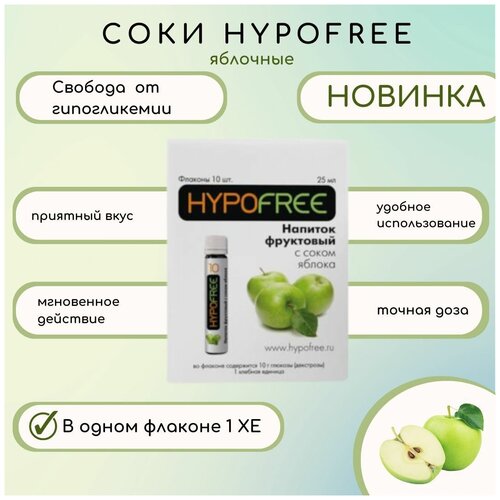 Напиток фруктовый с соком Яблока ГипоФри (HypoFree) для купирования гипогликемии при сахарном диабете 1 XE 10туб