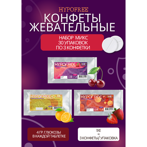 Hypofree Конфеты для купирования гипогликемии апельсин, вишня и клубника 30 саше по 3 конфеты