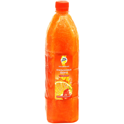 Сок апельсиновый с клубникой, прямого отжима, замороженный. 1 л. Упаковка (6 бутылок).