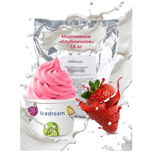 Смесь сухая для мягкого мороженого Клубничная / Клубника/ 1,6 кг/ Icedream (Айсдрим)