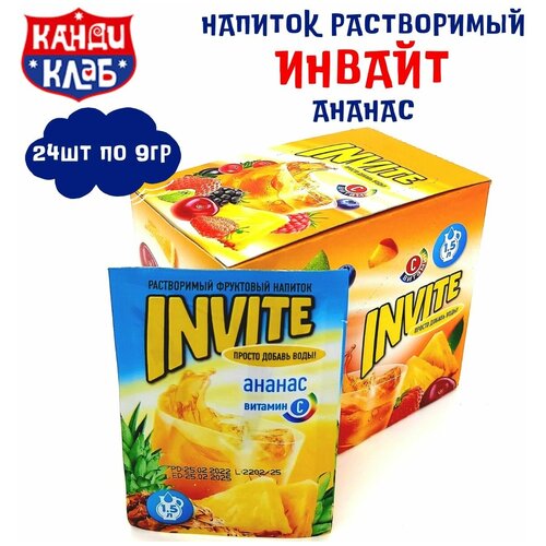 Растворимый напиток INVITE Ананас 24 шт по 9 гр / Инвайт / Канди Клаб