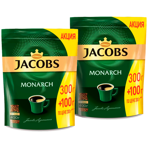 Растворимый кофе Jacobs Монарх 400 г, комплект 2 уп