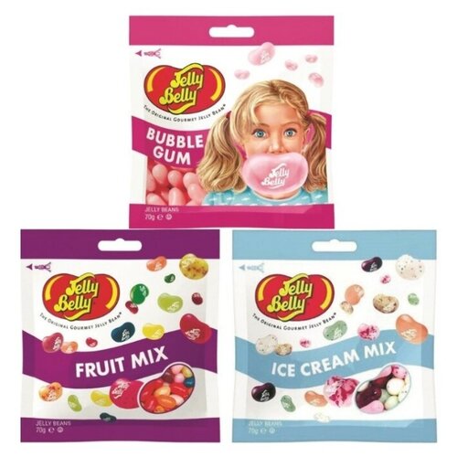 Конфеты Jelly Belly Bubble Gum 70 гр. + Fruit Mix 70 гр. + Ice Cream Mix 70 гр. (3 шт.)