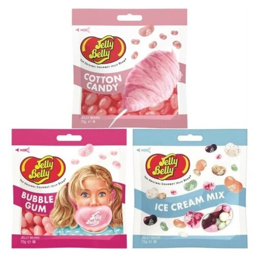 Конфеты Jelly Belly Cotton Candy 70 гр. + Bubble Gum 70 гр. + Ice Cream Mix 70 гр. (3 шт.)