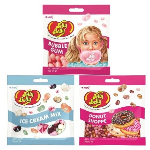 Конфеты Jelly Belly Bubble Gum 70 гр. + Ice Cream Mix 70 гр. + Donut Shoppe 70 гр. (3 шт.)