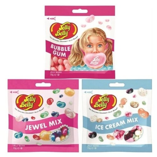 Конфеты Jelly Belly Bubble Gum 70 гр. + Jewel Mix 70 гр. + Ice Cream Mix 70 гр. (3 шт.)