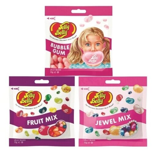 Конфеты Jelly Belly Bubble Gum 70 гр. + Fruit Mix 70 гр. + Jewel Mix 70 гр. (3 шт.)