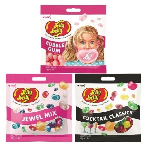 Конфеты Jelly Belly Bubble Gum 70 гр. + Jewel Mix 70 гр. + 20 вкусов 70 гр. (3 шт.)