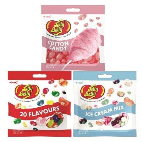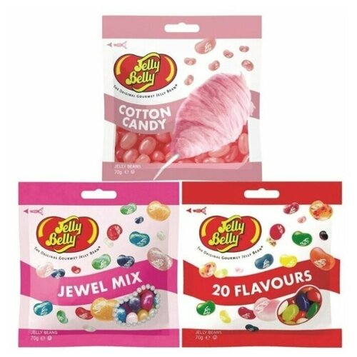 Конфеты Jelly Belly Cotton Candy 70 гр. + Bubble Gum 70 гр. + 20 вкусов 70 гр. (3 шт.)