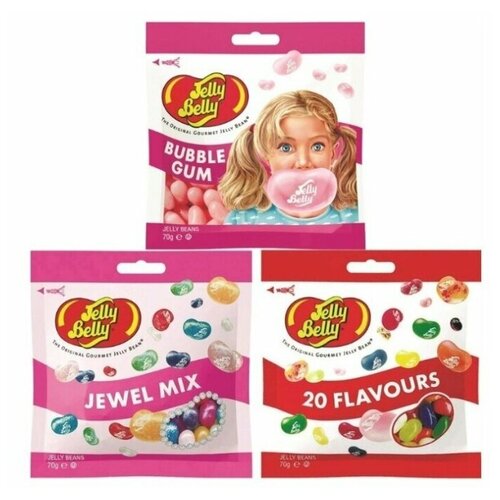 Конфеты Jelly Belly Bubble Gum 70 гр. + Fruit Mix 70 гр. + 20 вкусов 70 гр. (3 шт.)