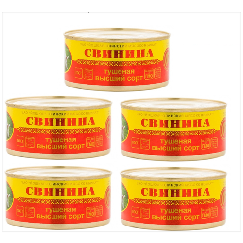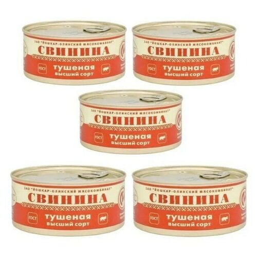 Свинина тушеная ГОСТ в/с люкс С ключом, Йошкар-Олинский мясокомбинат (набор из 5 шт по 325 г)