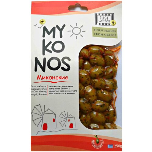 Оливки Джаст Грис Миконские в рассоле перец/чеснок 250г