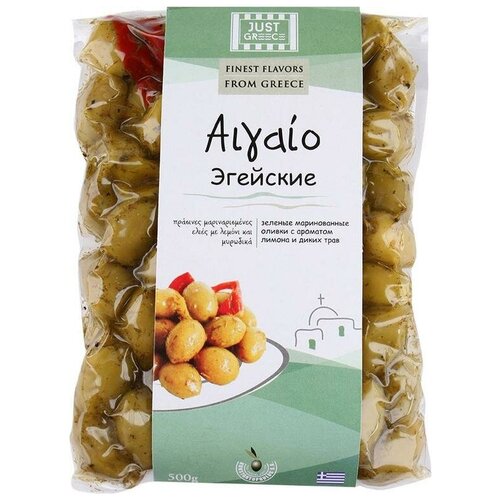 Just Greece Оливки Эгейские с ароматом лимона и диких трав, 500 г
