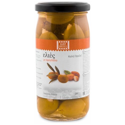 Оливки Джаст Грис фаршированные миндалем размер 91-100 360г