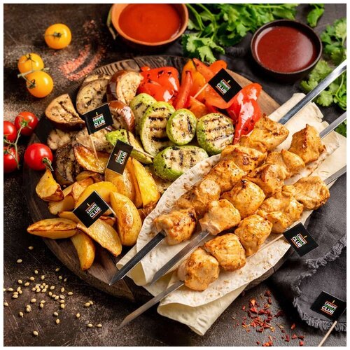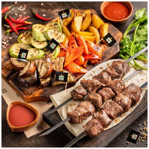 Шашлык из свинины в горчичном маринаде с овощами гриль