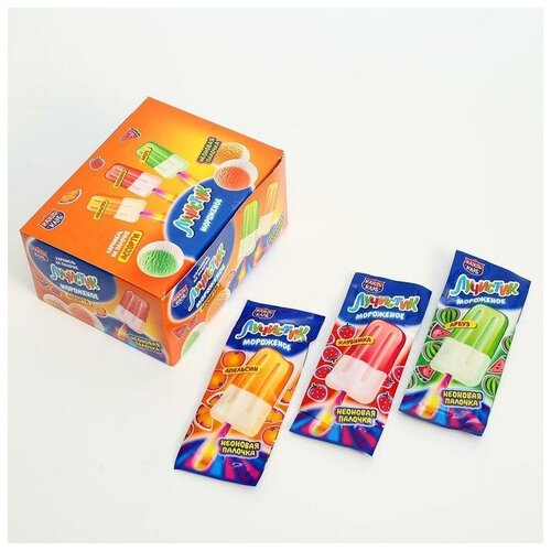 Карамель на неоновой палочке лучистик мороженое, со вкусом клубники, апельсина, арбуза, 30шт по 10 гр, Канди Клаб