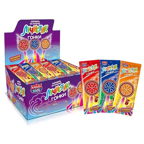 Карамель на неоновой палочке Лучистик Гонки ассорти, 30шт х 10г