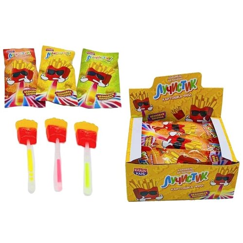 Карамель на неоновой палочке Лучистик Картошка Фри ассорти, 30шт х 10г