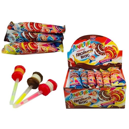 Карамель на палочке Лучистик Двойной вкус 30 шт по 10 г