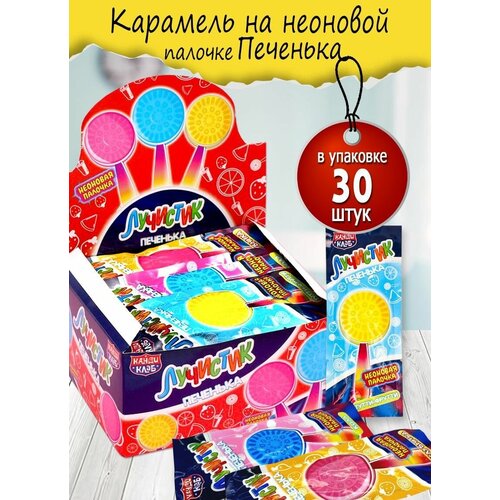Карамель на неоновой палочке Печенька Лучистик, 30шт по 10 гр.