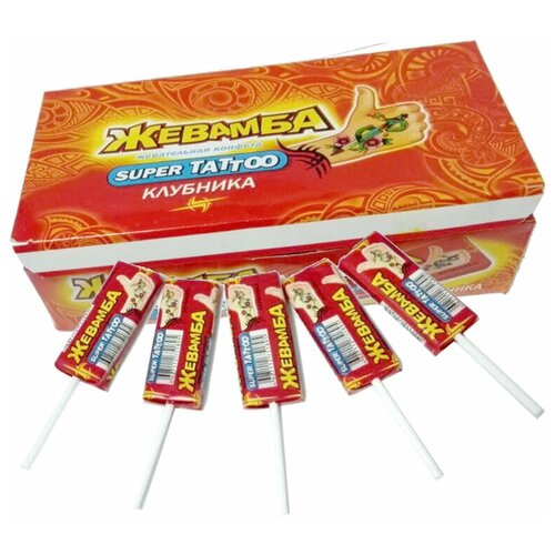 Конфета жевательная жевамба/супер тату Клубника 50 шт по 10 гр / Канди Клаб