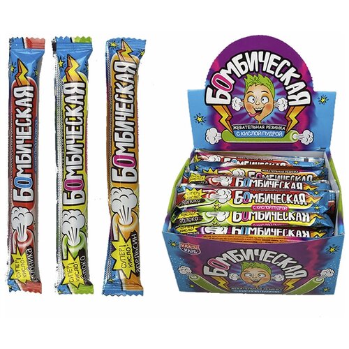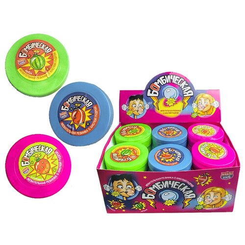 Жевательная резинка с кислой пудрой "Бомбическая" ассорти в пластиковой коробочке, 24шт х 15гр