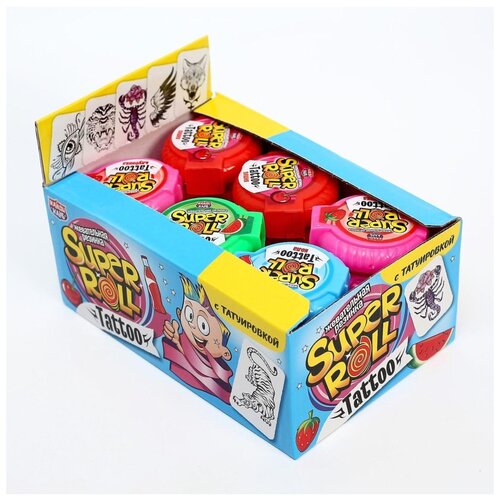Жевательная резинка супер ролл тату / Ассорти 24 шт по 12 гр / Канди Клаб