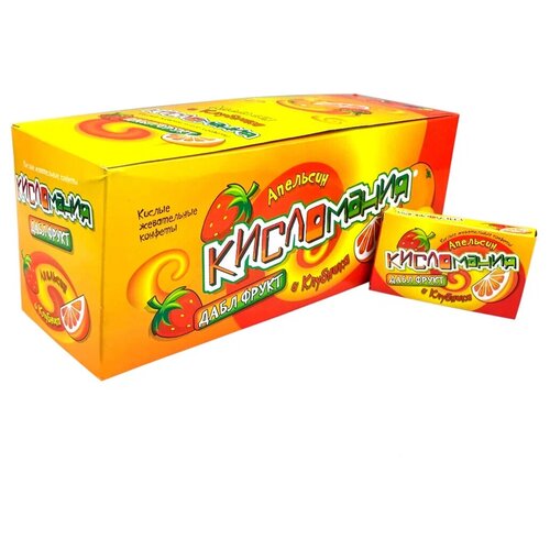Жевательные конфеты Канди Кисломания дабл фрукт апельсин и клубника 14 гр Упаковка 30 шт