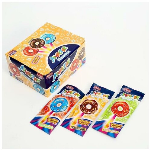 Карамель Канди Клаб на неоновой палочке Лучистик Пончик ассорти 10 гр Упаковка 30 шт