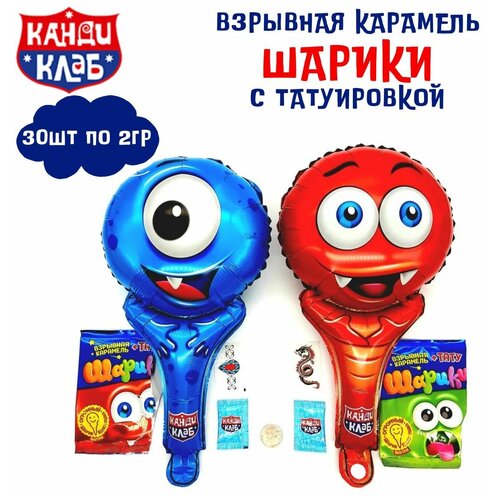 Карамель взрывная шарики с татуировкой 30 шт по 2 гр / Канди Клаб