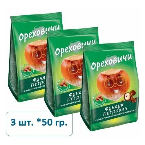 Драже Фундук Петрович в молочно-шоколадной глазури,3 шт по 50 г КДВ